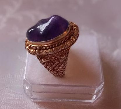 Prsten s ametystem je puncovaný platným českým puncem pro cizí zboží platným od roku 1921. Prsten je stříbro 925/1000 silně zlacené. Váha prstenu je 10,40 gramů a velikost prstenu je 57. Velikost prstenu je variabilní, lze jej roztáhnout do větší velikosti nebo naopak zmenšit. Průměr koruny prstenu je 2,5 cm na délku a 2 cm na šířku. V koruně prstenu je velký ametyst, který není vybroušený, ale je zasazený v přírodním stavu. Je to krásná šperkařská práce.